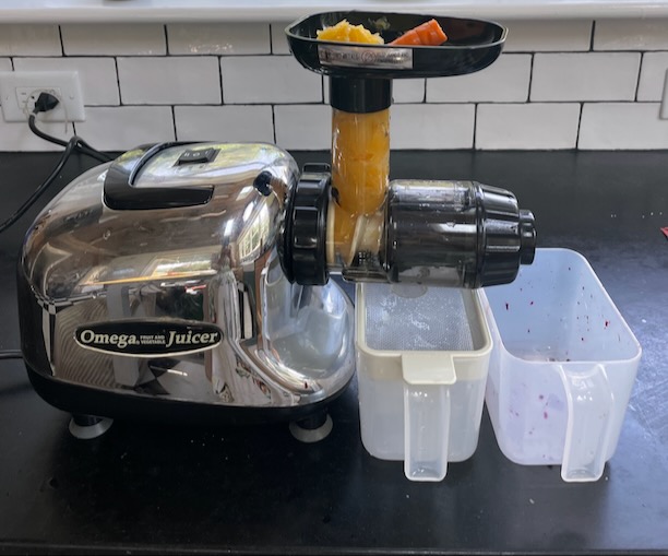 I intend to put mine into rotation among my community here (many of whom are members of a CSA and at a loss as to how to handle the bounty of vegs they don’t necessarily want to eat raw or feel inclined to cook). Also, do note that there’s a lot of a fruit or vegetable that doesn’t get juiced. I still think best is to eat them entire. But if you juice, do compost too. And if you don’t have a composter, simply bury the tailings in a planter or under an azalea. It’s all good.