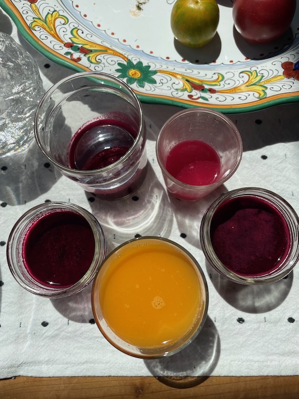Oh, except the mint. I also juiced mint all by itself. Yuck. But I totally recommend some sprigs in a mix such as with beets, apples, and/or grape. I wish I’d had watermelon. But again: this wasn’t making juice for juice’s sake so much as about not letting these foods go all to waste.