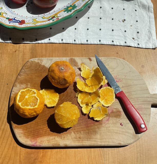 Take, for instance, the citrus in the basement fridge (a.k.a. “Siberia” and not so named for the temp). At Christmastime for many years now (so many that they predate me), Mr. Hollywood has gifted great crates of citrus from Texas to colleagues, family, and friends alike. It’s a welcome, healthy gift especially at that winter time of year. And he always gets a case for us too. Trouble is, we don’t always get through it before the oranges and grapefruit start turning spooky. This year was no different. By the way, it’s July.